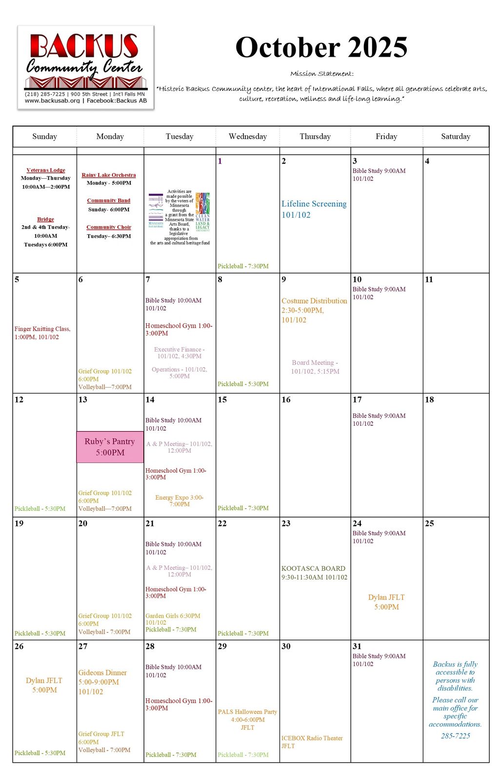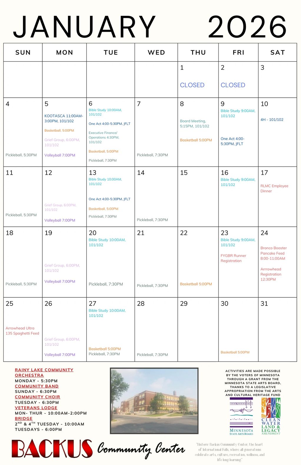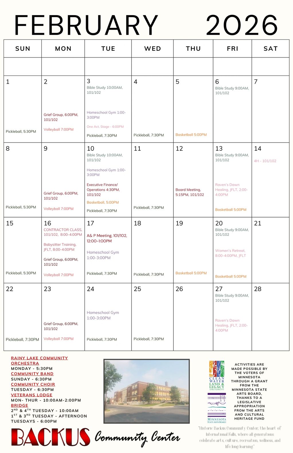 Backus Community Center | 900 5th Street, International Falls (218) 285-7225